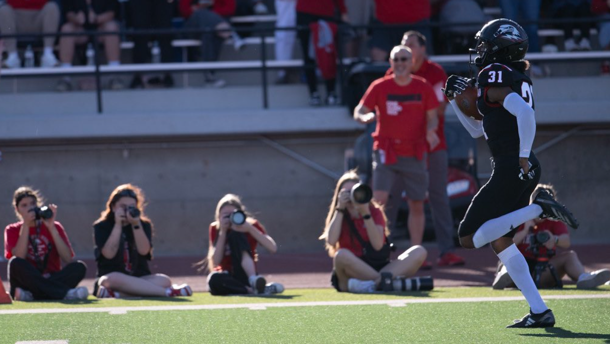Southern Utah cornerback LaCarea Pleasant-Johnson (31) takes an interception 59 yards for a touchdown against UC Davis on September 14, 2024.